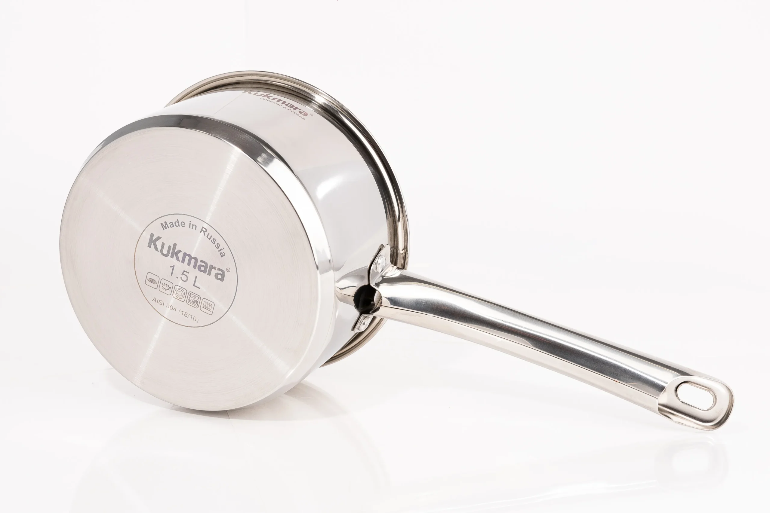 Ковш из нержавеющей стали 1,5л со стеклянной крышкой, линия «Leon»