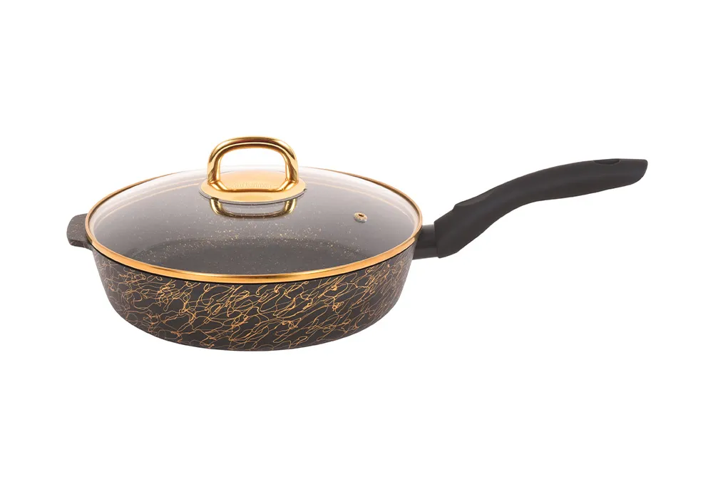 Оригинальная отделка внешней поверхности с помощью золотых и серебряных нитей, придающих посуде особое изящество и богатство, а так же уникальное внутреннее противопригорающее покрытие, обладающее исключительными антипригарными свойствами, прочностью и износостойкостью, не содержит PFOA, кадмий, свинец и полностью безопасно. Высокая прочность антипригарного покрытия позволяет использовать неострые кухонные металлические принадлежности.